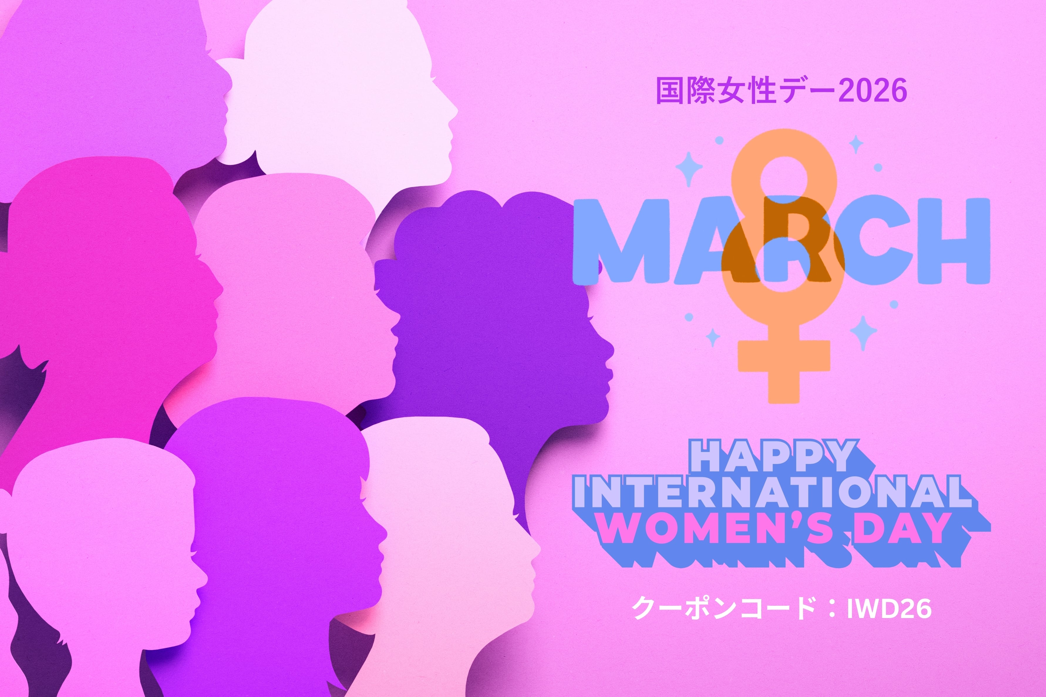 国際女性デー、全品26%OFFクーポンコード:「IWD26」3.9まで